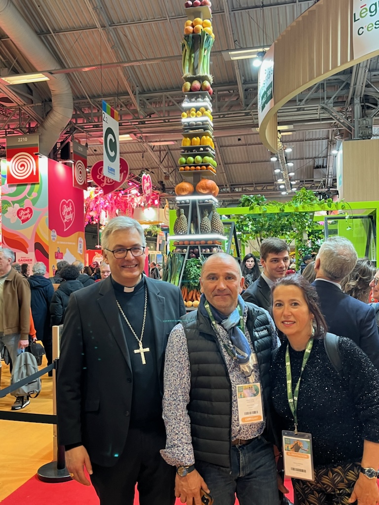 Monseigneur Durand a arpenté les allées du salon international de l’Agriculture à Paris mardi et mercredi. Il a pu notamment participer à l’inauguration du stand du département de la Drôme, et échanger avec les élus et les autorités. Il est aussi allé à la rencontre d’agriculteurs drômois dont de nombreux sont des fidèles ou même des paroissiens engagés. Il était guidé, entre autres, par Yannick Roussin, viticulteur à Tulette, et fortement impliqué dans la paroisse St Jean François Régis sur Lez.